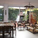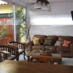 Se organizó el estar y el comedor principal, en el ex garage, volcado al patio-jardín (que dejó de ser de estilo español). Los padres obtuvieron en este nuevo estar-comedor: luz, conexión con el verde y la parrilla para relajarse leer y recibir amigos.