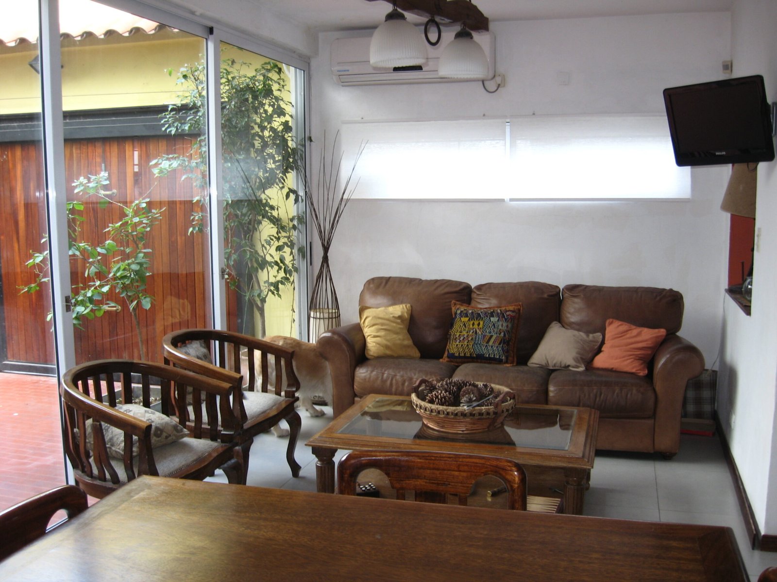 El estar comedor de la casa era angosto y oscuro y el espacio para guardar el auto era luminoso y con vistas al jardín.